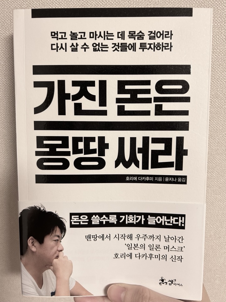 '가진 돈을 몽땅 써라' 얼마나 사람의 호기심을 자극하는 제목인지 모르겠습니다. 목숨을 걸어 먹고 놀고 마시라니, 책 내용이 너무 궁금했습니다. 책을 펼치고 앉은 자리에서 두어시간 만에 읽어 내려갔습니다. 호리에 다카후미라는 사업가의 인생철학이 담겨있었습니다. 물론 호리에가 구치소에 수감된 적도 있고, 책 내용의 모든 부분에 공감하거나 배울 점이 있다고 생각하지는 않습니다. 가장 크게 와닿았던 부분은 바로 '할 수 있어!'의 마음가짐과 시간과 실행의 중요성이었습니다. 마음가짐과 시간, 실행은 모든 사업가, 성공한 사람들이 강조하는 부분입니다. 앞서 리뷰한 '부의 추월차선'의 저자 엠제이 드마코 역시도 중요하게 다뤘던 요소입니다. 가진 돈을 모두 쓸 만큼 몰두하고 끝까지 일을 수행하는 것, 무엇이든 못 할 건 없다는 마음이 만나 성공과 부를 안겨준 것입니다.