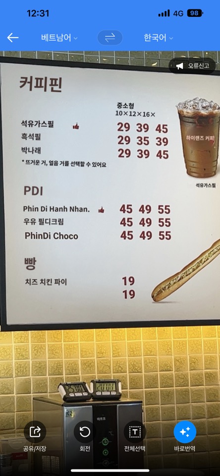 매장에서 음료를 주문하려고 파파고 번역기를 이용했는데요.