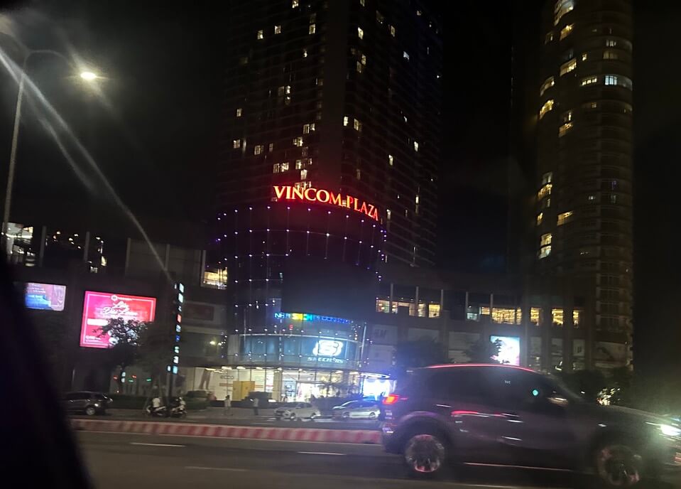 저녁에 그랩을 타고 가면서 본 빈컴플라자 외관입니다.