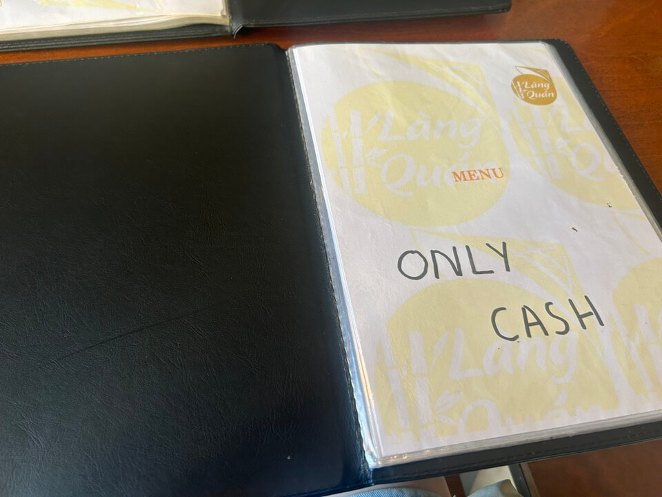 랑꽌은 현금 결제만 된다고 메뉴판에 적혀있습니다.