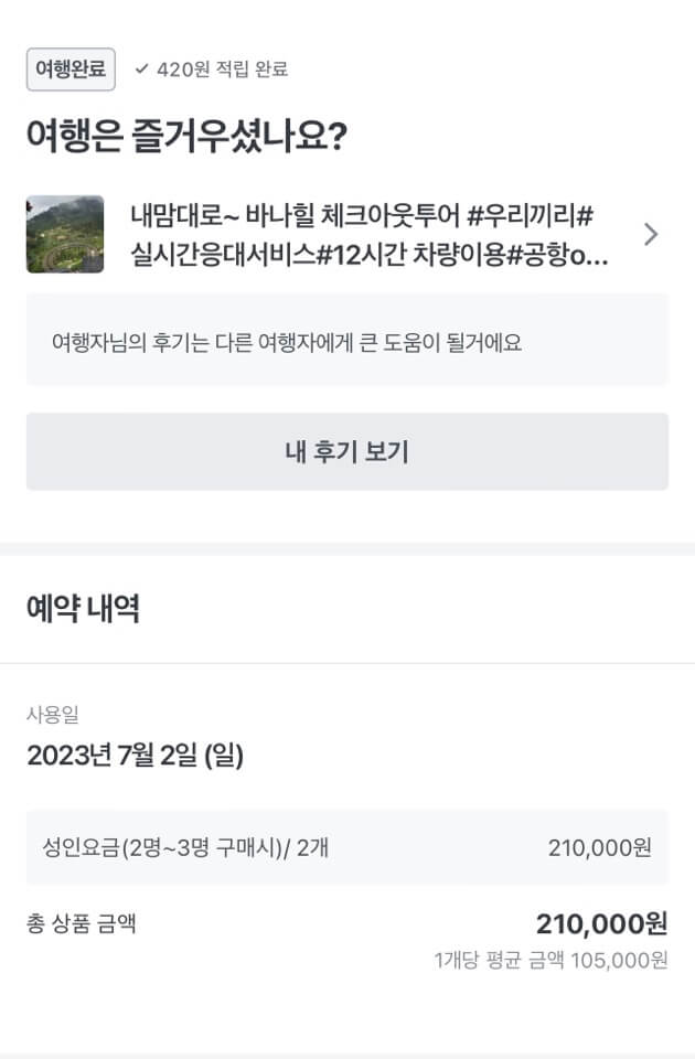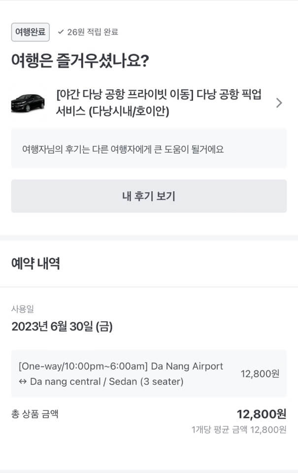 그중에서 저렴하고 후기가 좋은 'HAN TRAVEL'의 픽업 서비스를 예약했어요.