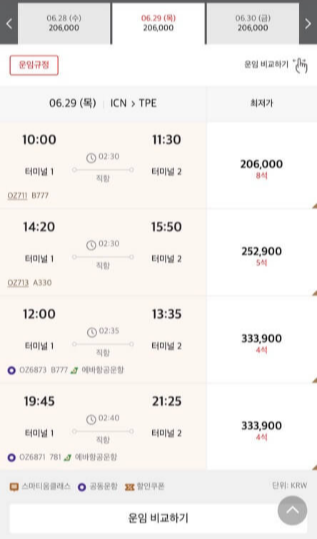 두 항공사 모두 신규 회원 할인을 적용했을 때의 가격이 별 차이가 없었지만,