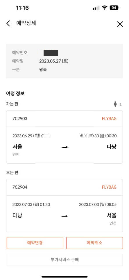1. 항공권 예약_제주항공 인천(ICN)-다낭(DAD) 왕복 항공권