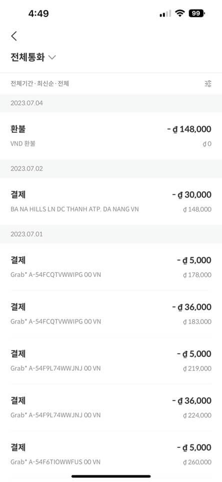 또 마지막 남은 148,000동은 재환전해서 환불받았습니다!