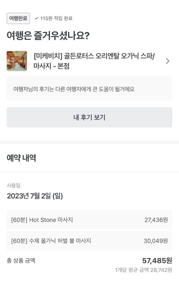 무료 샤워를 이용할 수 있다고 하여 마사지를 예약하게 되었습니다.