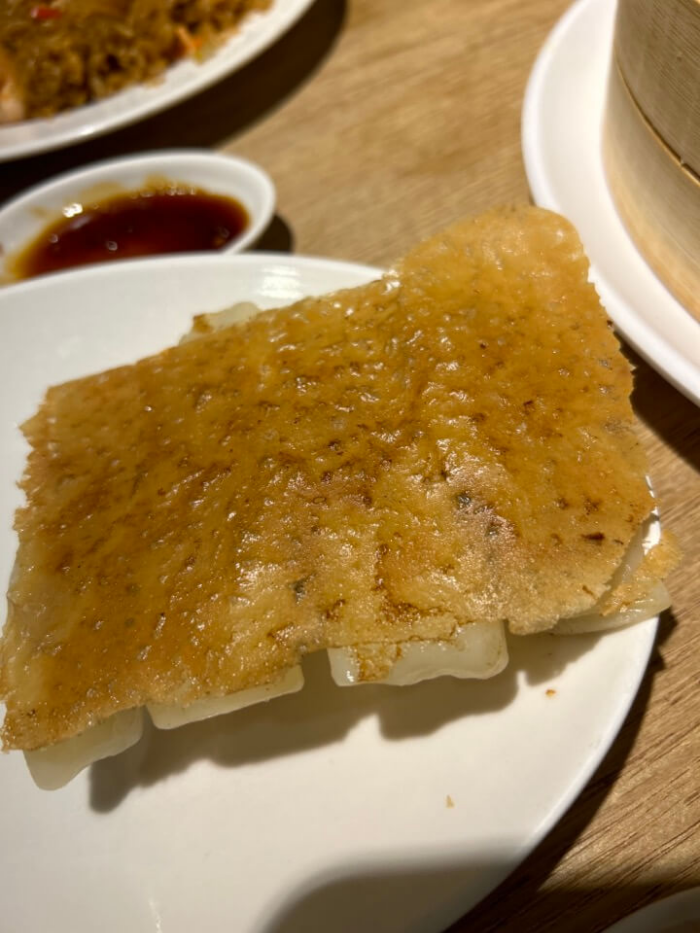 새우와 돼지고기가 들어간 딤섬 밑바닥을 바삭하게 튀겨낸 음식인데, 같이 나오는 소스가 살짝 매콤 달달했어요!