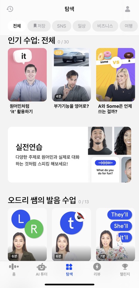 - AI 튜터 기능으로 실전 대화와 실시간 피드백 가능