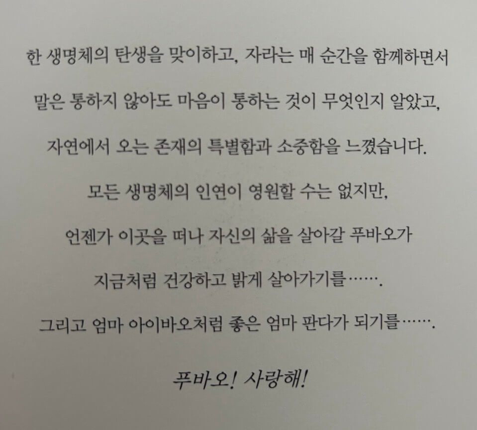 푸바오의 성장기를 사진으로 볼 수 있어 읽는 내내 입꼬리가 내려오지를 않았습니다.