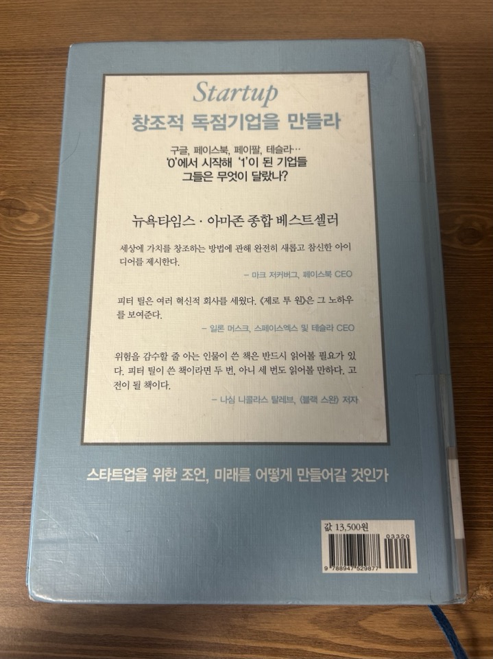 스탠퍼드 대학에서 페이팔 창업자 피터 틸이 강의한 스타트업 수업을 블레이크 매스터스가 꼼꼼히 필기하여 본인의 블로그에 연재합니다. 블로그에 올린 피터 틸의 수업 내용이 사람들의 폭발적인 반응을 불러일으킨 것에서 시작되었습니다. 스타트업, 비즈니스를 시작하려는 사람이라면 책에서 피터 틸이 말하는 것들을 고민하고 답해 볼 필요가 있을 것입니다.
