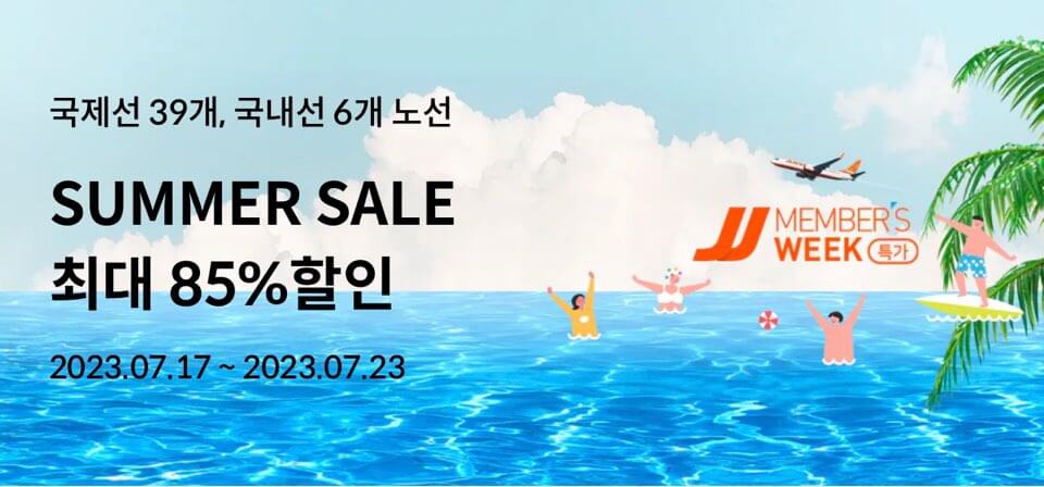 제주항공 멤버스 위크 썸머세일은 2023년 7월 17일(월)부터 2023년 7월 23일(일)까지 1주일 동안 진행됩니다.