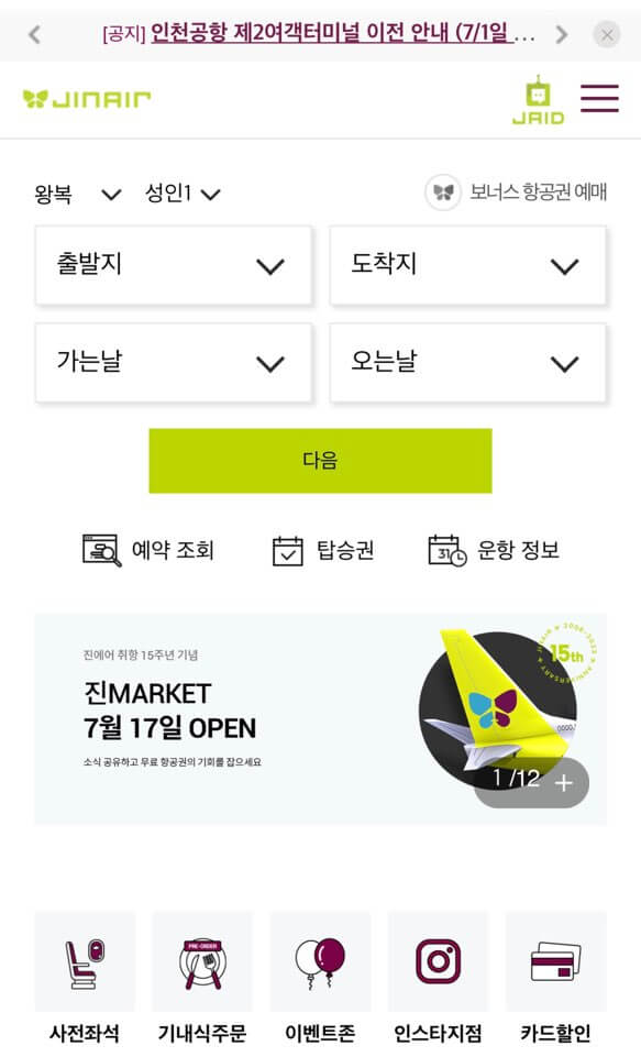 국제선 항공권을 저렴하게 예약할 수 있는 기회이니 만큼 저도 진마켓 특가를 노려봐야겠습니다!
