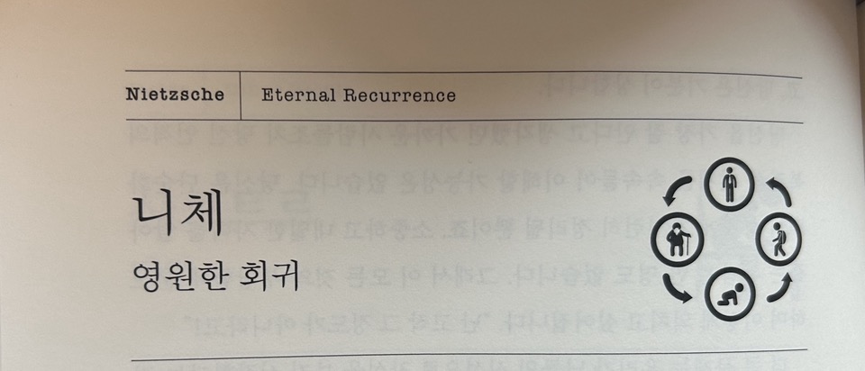 니체가 말한 '영원한 회귀'의 내용의 이해를 돕는 간단한 그림이 나타나있습니다. 그림이 직관적이라 알아보기 쉽습니다.