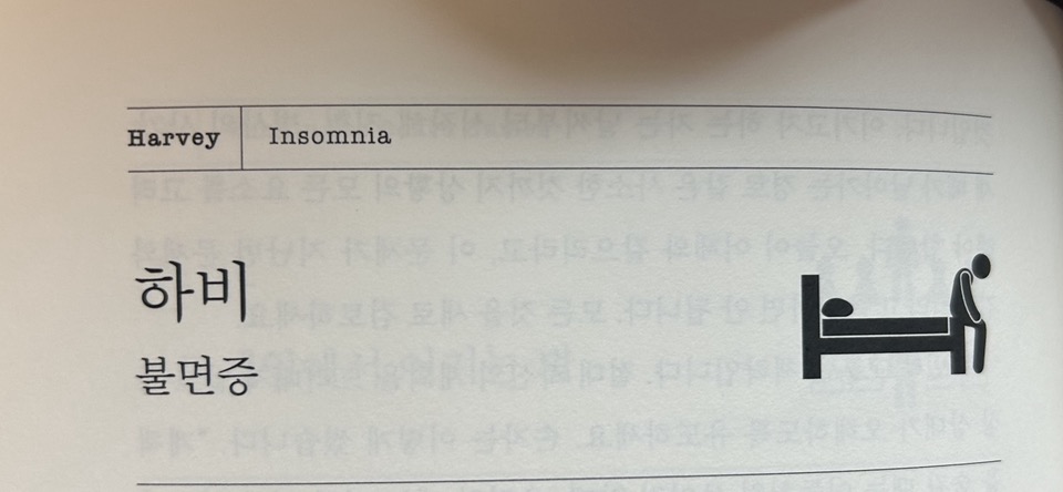 하비의 불면증 내용에는 정말 잠을 이루지 못하고 고통받는 듯한 사람의 모습을 표현한 그림이 나옵니다.