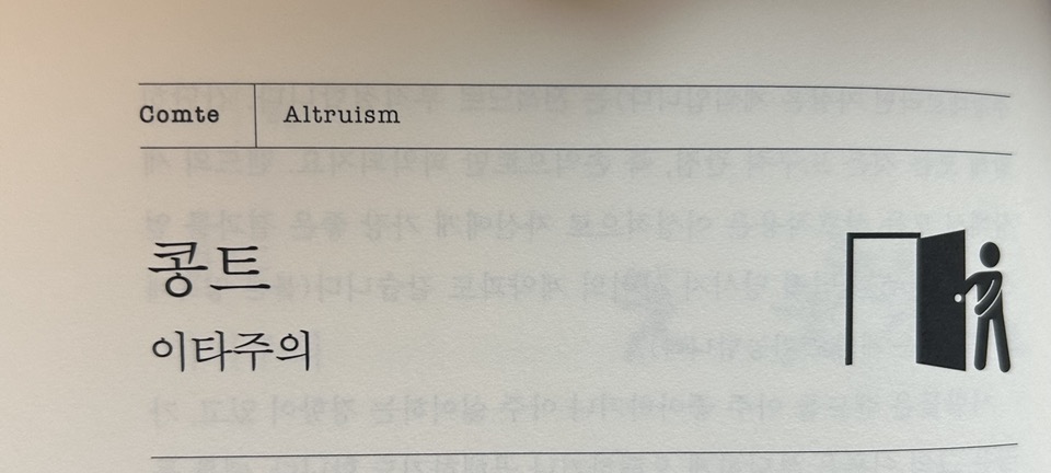 콩트의 이타주의는 다른 사람을 위해 문을 잡아주는 사람으로 묘사되었습니다.